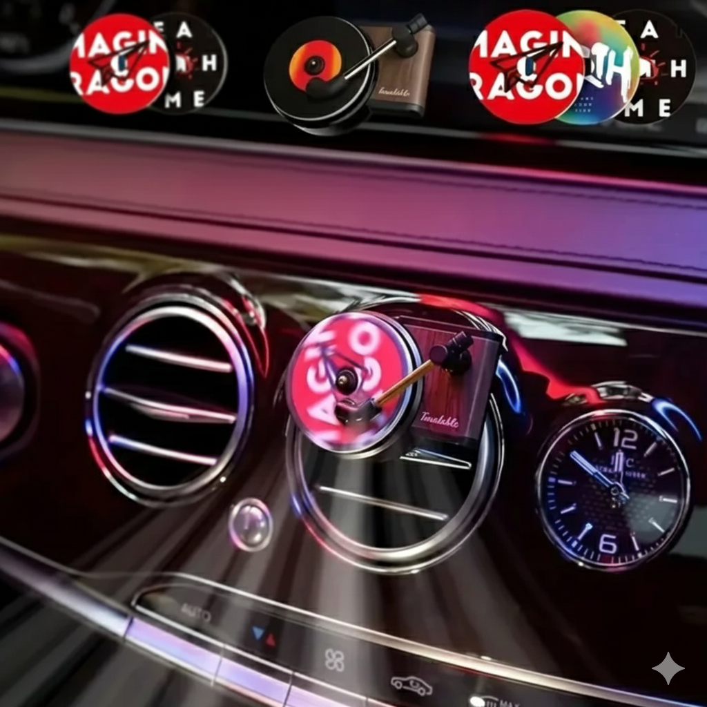 Imagine your favorite tunes playing while a soft, refreshing scent flows through your car — and a tiny spinning vinyl completes the moment. That’s FreshBeats™. You don’t just drive... you groove.